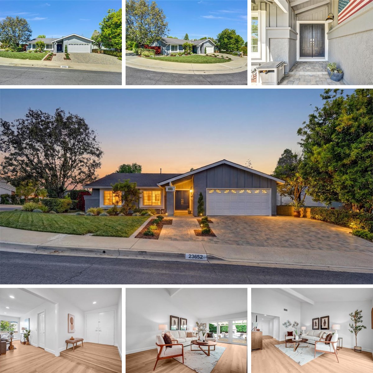 Stunning Single-Level Corner Lot Home in Prime Mission Viejo Cul-de-Sac Location. Welcome to this beautifully remodeled 3-bedroom, 2-bath home, ideally situated on a private cul-de-sac in one of Mission Viejo’s most sought-after neighborhoods. Step inside to discover a light-filled open floor plan with soaring vaulted ceilings, wide-plank luxury vinyl flooring, fresh interior paint, and large dual-pane windows throughout. The home’s stunning rear wall of windows and sliding glass doors floods the space with natural light, creating a seamless indoor-outdoor living experience. The spacious living room flows effortlessly into a formal dining area, ideal for entertaining. The bright, updated kitchen overlooks the beautifully landscaped backyard and opens to a cozy family room with a fireplace—perfect for everyday living. Step outside to your expansive backyard oasis—designed for entertaining and enjoyment. Highlights include: custom paver patio, stacked stone outdoor fireplace, covered patio area, low-maintenance turf lawn, a potting bar and planters with native California landscaping. The private primary suite is a true retreat, featuring an additional flexible room ideal for a home office, nursery, or relaxation space. Both bathrooms have been thoughtfully remodeled with new cabinetry, tile, countertops, and modern finishes. Additional upgrades include: new HVAC system and ductwork, tankless water heater, fully repiped pex plumbing, new range and microwave, and recessed lighting. Enjoy the best of Southern California living with close proximity to top-rated schools, parks, scenic hiking trails, shopping, and dining. Plus, you’ll have access to Lake Mission Viejo amenities, including boating, concerts, and year-round community events.