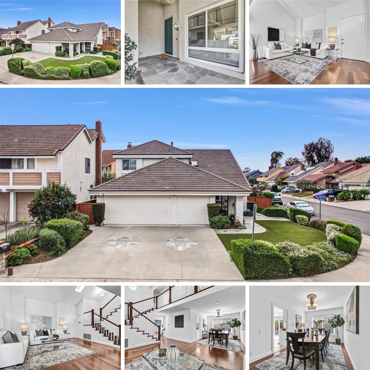 Nestled in the heart of Lake Forest, this stunning, completely renovated home will take your breath away! Located on a premium corner lot of 5,300 square feet, this home features 4 upstairs bedrooms, 3 bathrooms, and 3-car attached garage along with 2,140 square feet of living space. The home is located in the Amazing grand entrance with vaulted ceilings, skylights, & the beautiful wood floors. Some of the incredible upgrades include a renovated chef's kitchen that has upgraded white shaker cabinets, quartz counters, custom marble back splash, stainless-steel appliances, sink, recessed lights, and updated fixtures. The open floor plan connects the kitchen to the sunken living room, formal dining room, & upgraded bar area that is perfect for entertaining. Cozy fireplace. Scraped ceilings throughout with recessed lighting. Inside laundry with closet. All baths are amazing with New white shaker cabinets, quartz counter tops, tile floors, mirrors, toilets, & custom showers with updated fixtures. Huge master suite with sliding glass door that has access to oversized deck. Master also has vaulted ceilings and a ceiling fan. Master bath has double sinks & custom marble on floors & shower. All bedrooms have newer plush carpet. Other upgrades include dual pane windows, newer HVAC system, 26 panel 9kW Lease Solar System ($147 per month), insulated garage doors, and tons of cabinets in garage for storage. Walking distance to La Madera Elementary School and El Toro High. You'll also enjoy the benefits of being a member of the Sun and Sail Club which includes access to pools, spas, exercise and workout rooms, tennis, basketball and volleyball courts, a playground area, a clubhouse and much more! No Mello Roos and low HOA of $116 per month. A great place to call home!